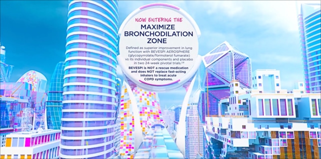The 3D interactive ride was featured at the ATS International Conference, the home of pulmonary, critical care and sleep professionals. Attendees experienced a stereoscopic, 3D monorail-style journey through two “branded” cities, learning more about two different patient therapies for COPD.