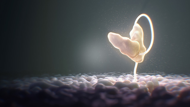 A chimeric antigen receptor (CAR) sprouts from the surface of a genetically re-engineered white blood cell.