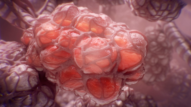 Deep in the lungs, we can see the clusters of tiny air sacs — the alveoli — becoming inflamed and filling with pus, making it difficult to breathe.