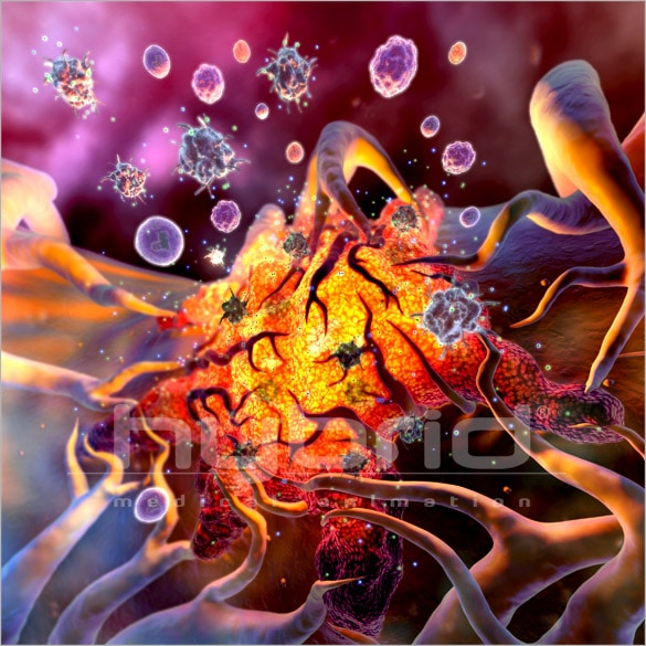 The idea here was to make a malignant tumor look like a hot coal ember, to suggest inflammation.