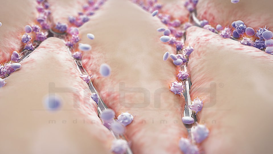 Inflamed vascular endothelium from an expanded stent can lead to subsequent platelet activation and aggregation.