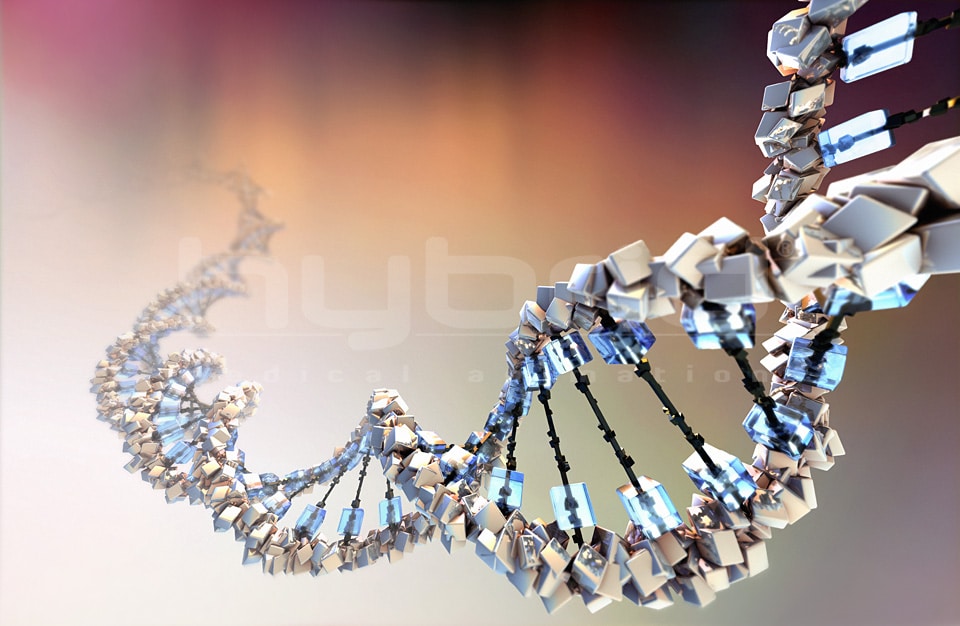 After the successful trade show installation, we revisited the 3D scene independently to explore more visual possibilities, taking subject matter that is recognizable or familiar like the structure of DNA and trying to create a new way to beautifully and dramatically represent the double helix.