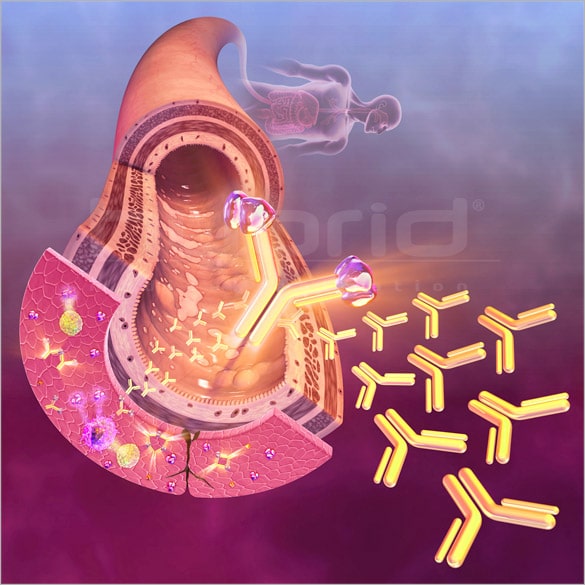 Using one main key visual, portray the pathology of Crohn’s disease in the gastrointestinal tract – and feature HUMIRA®