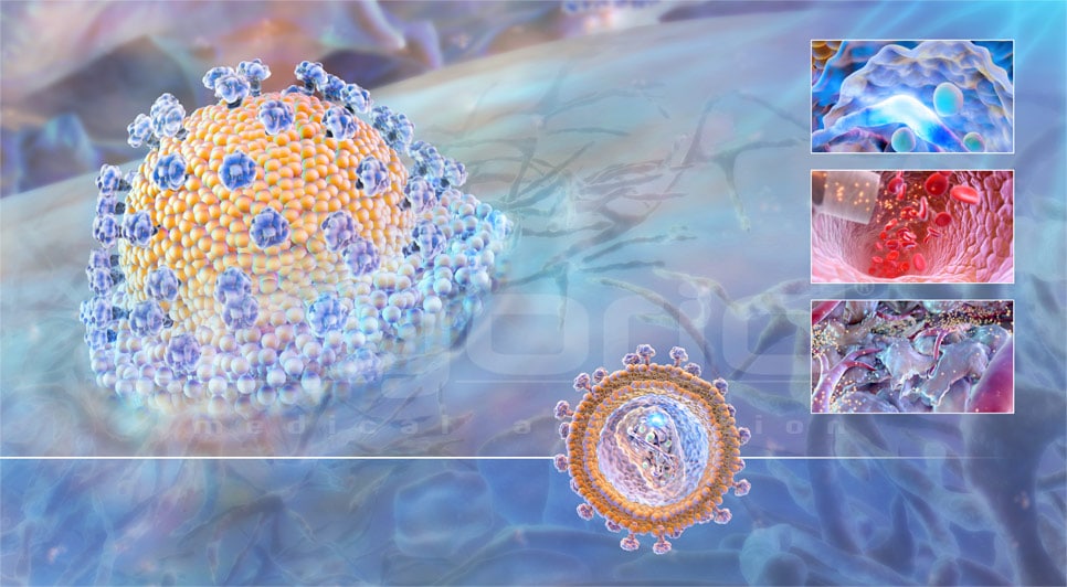 A cross-section of the nanoparticle is also seen, showing the killer gene.