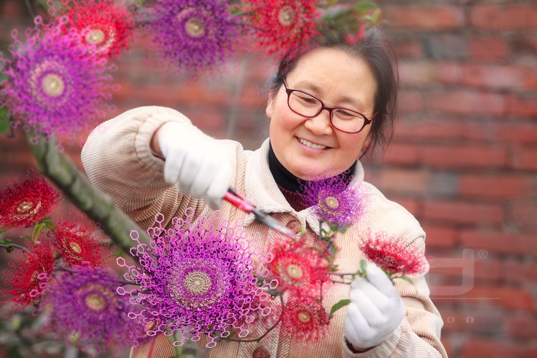 The challenge for this photo was to make believable flower structures from a single specific molecular model. We solved that by imitating nature and laying out the molecule in certain patterns. This way, we were able to achieve a flower-like shape, but still maintain a view of the single structures.
